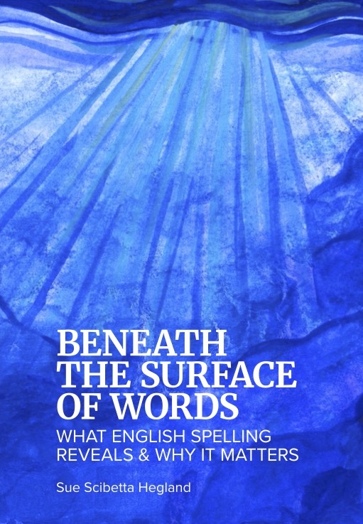 Beneath the Surface of Words explains and illustrates three foundational concepts: 1) the English language is structural; 2) written language has evolved to clarify the identity of words, using more than graphemes alone; and 3) written and spoken language are distinct systems, parallel—with many connections between them—but not direct translations of one another. The book includes discussions of morphology, the role of etymology in understanding spelling, the purpose of spelling conventions, and the ways in which spoken language is represented in writing. To get a sense of the scope and focus of the book, you can go to the Amazon link for the book and click the “read sample” box below the book image. You can also read through the Table of Contents which follows in this post. (And see the bonus chapter that I published in 2023, which can be found here.)